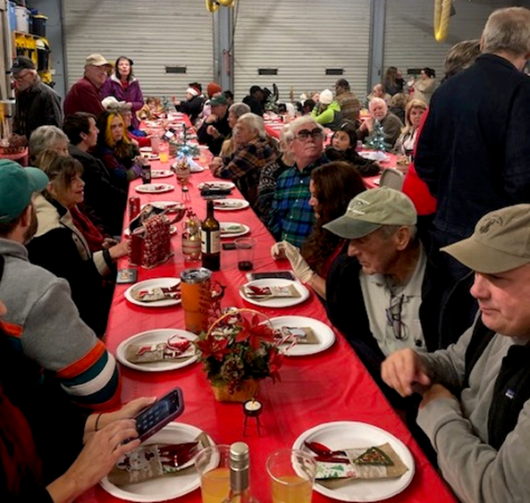 MVFA held its annual Christmas dinner last Saturday at the Fire Station. This free event goes back many years and is possibly the longest running MVFA event – began by its founder Lois Pearson. As before, the dinner was a great place to see old friends, and meet new ones. There were over 165 dinners served, and Santa and his helper elves were here, spreading holiday cheer and presents for over 40 kids.