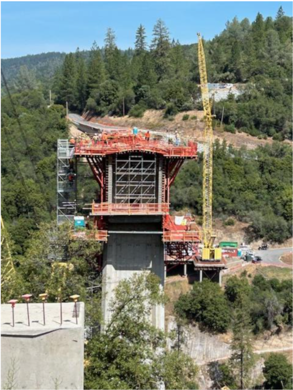 On Friday, June 20th, 2025, El Dorado County Transportation Senior Civil Engineer Brian Franklin led a group of 20 Mosquito residents on a tour of the Mosquito Bridge, currently under construction. This tour was a silent auction item at the May 10th MFPD District Auxiliary (D’Ax) fundraising event: “The Mosquito Fire Raise the Roof Fundraiser”. There were ten individual auction items, each consisting of two tickets for the tour.