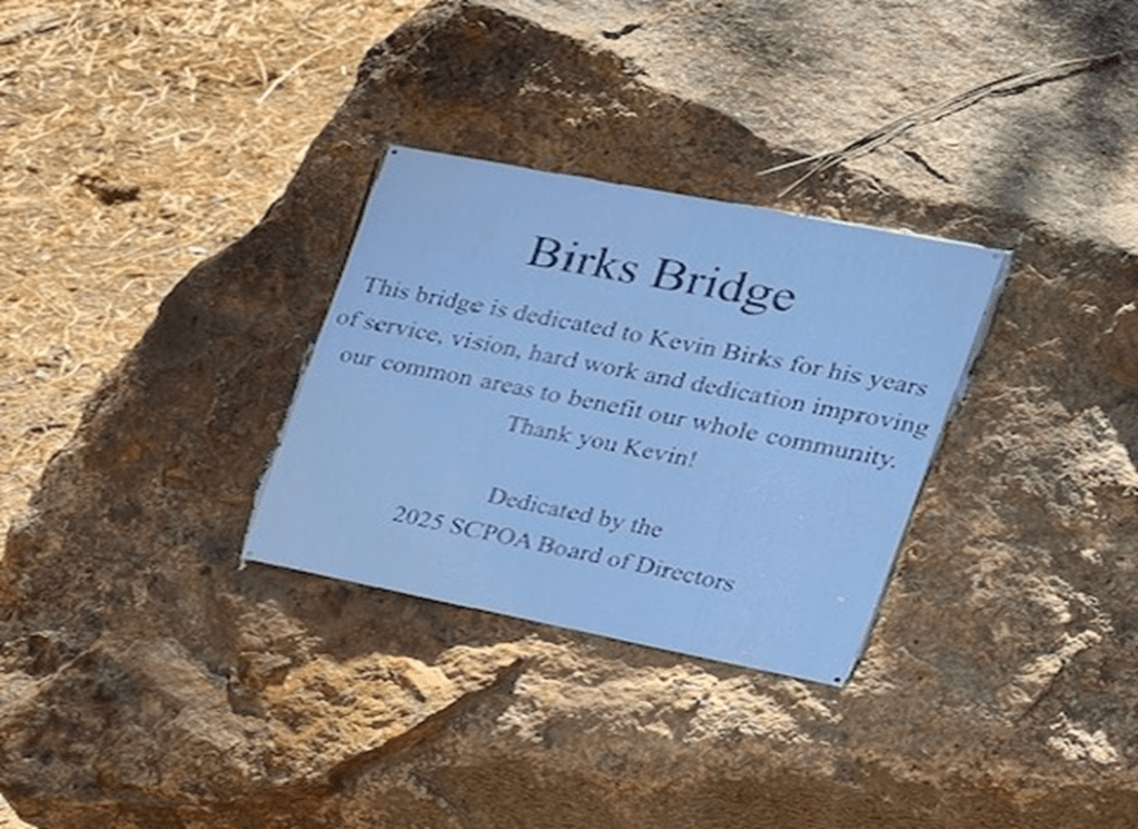 Kevin Birks has been the long – time maintenance worker for the Swansboro Country Property Owner’s Association (SCPOA), and recently retired. Kevin is also a long – time volunteer for the Mosquito Fire Protection District, Support Group. Ed O’Neill has been voluntary custodian of Bass Lake for over 17 years. His property borders the common area at the lake. At the February 2025 Annual SCPOA meeting, the Board of Directors recognized the significant service and dedication these two gave to our community.