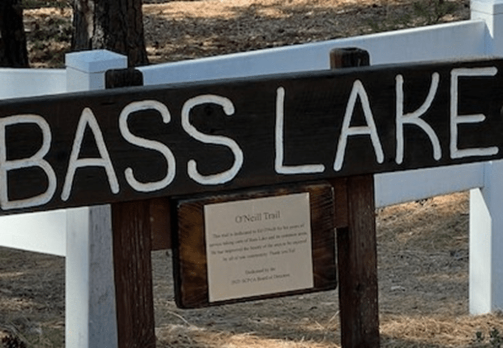 The SCPOA board dedicated this bridge as “Birks Bridge” to recognize Kevin’s vision and accomplishment. Kevin built more picnic tables and benches at Trout Lake creating a special place in our community. Open spaces abound here with plenty of shade for spending the day fishing, picnicking, walking always welcomes residents to come and enjoy the lake. He and his wife Linda put out benches, a swing for children, and cleared an additional path to the lake through their property for a disabled neighbor to access the lake. Ed raked, burned, dispatched downed limbs and trees, and dug ditches for drainage during the rainy season. He wants the lake to be at its best for everyone. Ed happily talks with folks about the lake’s history, the fish and the funny things that have happened there over the years. The SCPOA board named the trail to the lake as “O’Neill Trail”, and placed a sign at the entrance in appreciation for Ed’s service to our community.